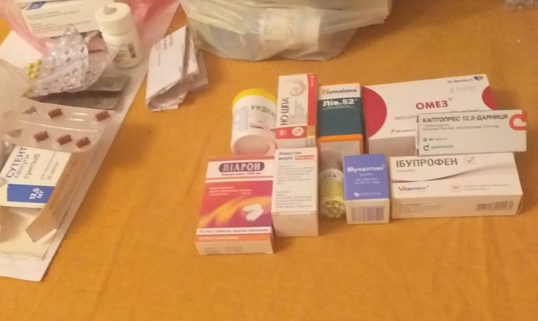 Svetlana was under unimaginable pressure from multiple angles. Her long-time husband was deathly ill, her city was being actively attacked, and the threat of war eliminated her job and only steady source of income. But Svetlana’s primary concern was her husband’s pain. She reached out to us last month to help purchase about $50 worth of drugs for palliative care that were otherwise completely out of her reach. We were happy to help. Like almost all United Ukraine recipients, Svetlana was scrupulous about sending us photos and receipts for what your donations purchased.